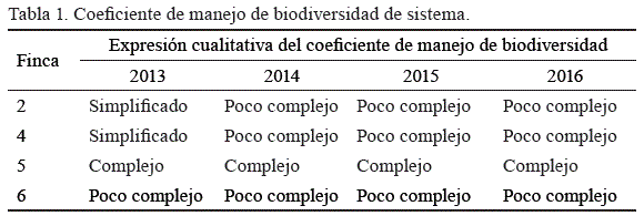 La tendencia al incremento de la complejidad en las fincas, como se aprecia en la tabla 1, es muestra de la comprensión, por parte de los productores, de la necesidad y los beneficios de la biodiversidad en los sistemas productivos.