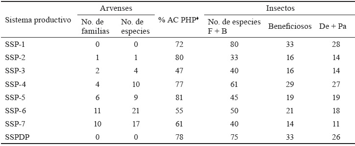La relación plantas arvenses-insectos beneficiosos en este estudio pudo estar influenciada por el manejo dado a los sistemas productivos, lo cual es una respuesta esencialmente al cubrimiento del área por las especies pratenses y forrajeras (tabla 4).
