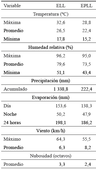 Características edáfoclimáticas. El suelo se clasifica como Pardo con Carbonatos (Hernández-Jiménez et al., 2015), con relieve ondulado. El clima es cálido tropical (Centro del Clima, 2018). Los valores de las variables climatológicas en la etapa experimental se presentan en la tabla 1.