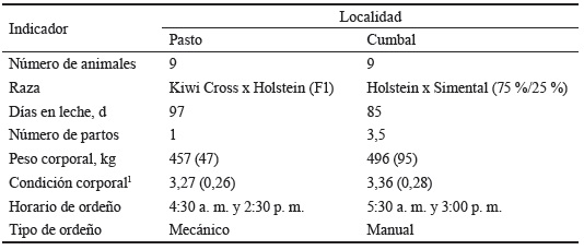 Animales experimentales. En cada localidad se seleccionaron nueve vacas lactantes en óptimas condiciones de salud, cuyas características productivas antes del inicio del ensayo se relacionan en la tabla 2.