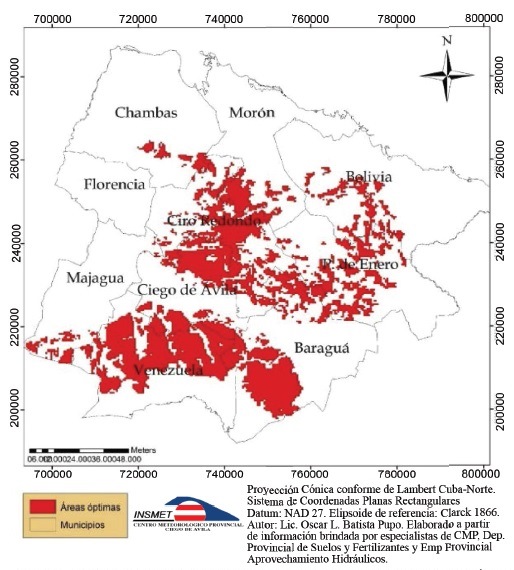 Con el desarrollo de este estudio, se dispone de mapas temáticos, que señalan las áreas de mayor aptitud de los suelos (categorías agroproductivas I y II), la temperatura media y la disponibilidad de agua sectorizada para diferentes cultivos agrícolas. Además, constituye una herramienta a disposición de los gobernantes, decisores, especialistas, técnicos y agricultores que participan del ordenamiento agroclimático en Ciego de Ávila.