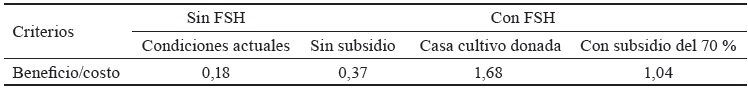 Análisis económico. Para valorar la factibilidad de la producción de FVH, los cálculos económicos se hicieron sobre la base de un invernadero de caña guadua (Guadua angustifolia Kunth), de 15 m de largo y 7 m de ancho, común en la zona de estudio, por lo que se consideró más adoptable por los tenedores locales de ganado.
