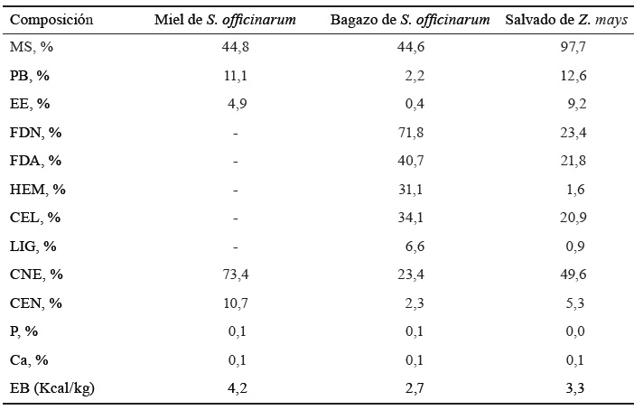 Los subproductos generados del procesamiento de S. officinarum constituyen materias primas para la elaboración de suplementos, destinados a la alimentación de rumiantes, sobre todo en épocas de escasez de alimento, en diferentes formas de uso y variaciones, con la adición de otras sustancias que pueden mejorar la disponibilidad de los nutrientes y su digestibilidad (Berman-Delgado, 2011; Fernández-Méndez, 2018).