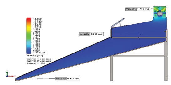 Se analiza además, el comportamiento del campo de velocidades en el interior de la cámara de secado en 2D y se valoran las velocidades obtenidas para verificar si el aire se distribuye de manera uniforme en la cama del producto.