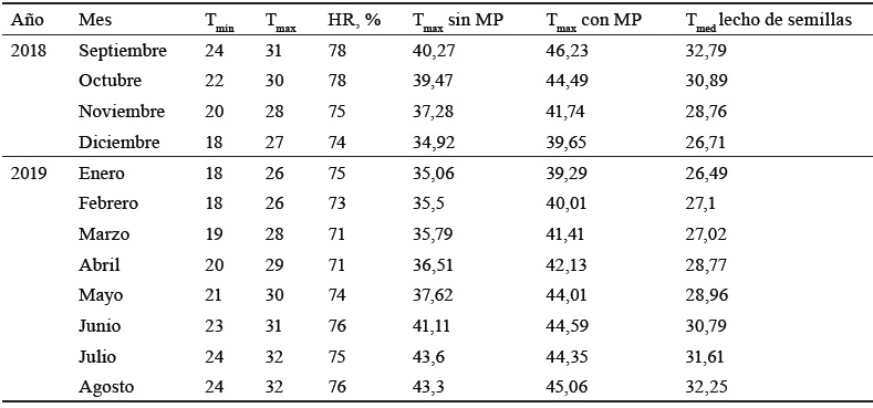 Se realizaron simulaciones para el análisis del prototipo con los datos meteorológicos de los últimos 12 meses anteriores al estudio (tabla 3). Se consideraron las variables meteorológicas temperatura mínima media y humedad relativa para cada mes (INSMET, 2019).