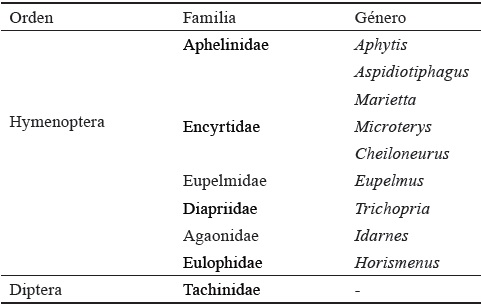 En las trampas de caída se estableció un grupo funcional, pues no se cuenta con referencias de su inclusión en otros estudios de este tipo. Se le denominó parasitoides. Estos pertenecen a los órdenes Hymenoptera y Diptera (tabla 5). Según Vázquez et al. (2008), los parasitoides se desarrollan dentro del insecto huésped o sobre él, que casi siempre muere.