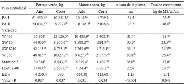Conclusions: All the varieties showed high potential for forage production under the conditions of both altitudinal plateaus. Likewise, the environmental conditions were determinant in the performance of the different genotypes.
