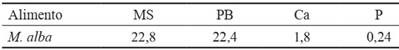 M. alba, utilizada en los diferentes niveles de inclusión, presentó excelente calidad nutricional (tabla 2), con alto tenor de PB (22,4 %), cercano al valor señalado por Martín et al. (2014) y Alpízar-Naranjo (2014).