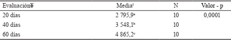 Estos intervalos de días de evaluación ayudan a conocer la edad más adecuada de los pastos para el cálculo de MS. En este estudio, las evaluaciones del cálculo de MS se realizaron a los 20, 40 y 60 días después del pastoreo (tabla 3).