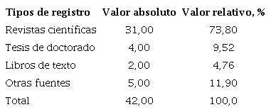 Para la localización de los documentos bibliográficos se utilizó como fuente documental Google Académico con los descriptores: red de innovación, extensionismo en red, transferencia de tecnología agropecuaria, sistemas de extensionismo agropecuario y transferencia tecnológica en Cuba. Se obtuvo un total de 42 registros (tabla 1). Se seleccionaron aquellos documentos que se consideraron más idóneos, en función de los aspectos componentes de la revisión.