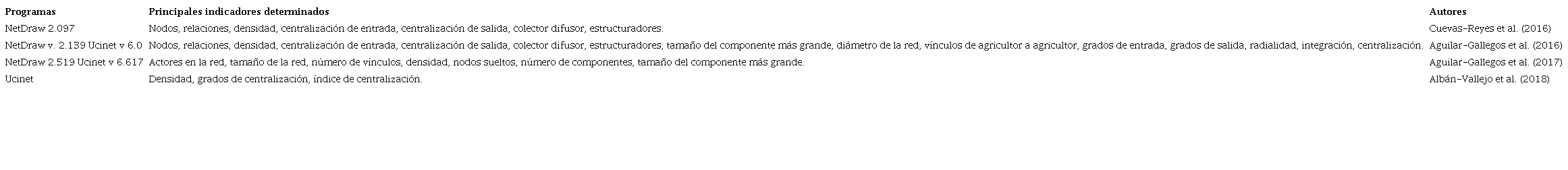 A continuación, se describen algunos de los programas más utilizados y los principales indicadores que se obtienen (tabla 3). Por lo general, con el transcurso del tiempo se ha observado incremento en la cantidad de indicadores, debido en gran medida al avance científico y tecnológico, lo que a su vez permitirá la realización de análisis más integrales y rigurosos desde el punto de vista científico.