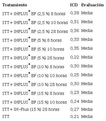 Al evaluar el índice de calidad de Dickson (tabla 5), los mayores valores se obtuvieron en los tratamientos donde se combinó el método de escarificación térmica, sumergiendo la semilla en agua a 80 ºC durante dos minutos con el bioproducto IHPLUS® BF a diferentes concentraciones, a pesar de que los valores de este índice representaron una calidad media para las condiciones de campo (Sáenz-Reyes et al., 2014).