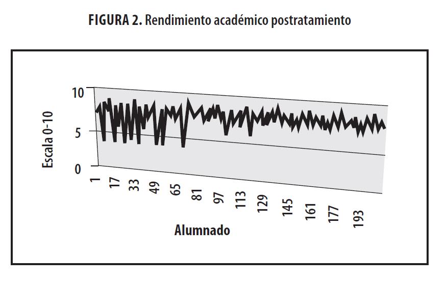 Con respecto al rendimiento académico postratamiento alcanzado por el alumnado en la asignatura Teaching EFL and Children’s Literature, la figura 2 recoge los resultados obtenidos. Se puede afirmar que el rendimiento académico en estos tres años es elevado, pues 95.5% supera la asignatura. La distribución de las calificaciones se mueve en los rangos del notable y el sobresaliente: 20% del alumnado alcanza el sobresaliente y 73.5% el notable. Los suspendidos alcanzan 4.4% del alumnado. Cabe aclarar que para este estudio solo se ha contado con el alumnado que asiste de manera regular a la asignatura, por tanto ha llevado a cabo la evaluación formativa y compartida.