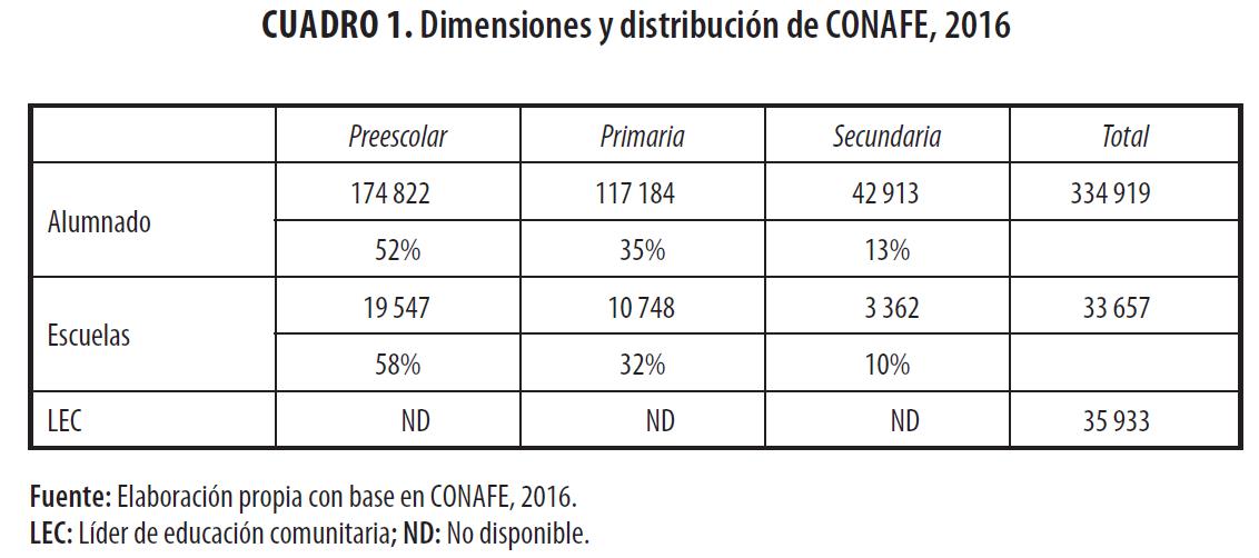 Keywords: CONAFE, context, dimensions, sources, agents and results.