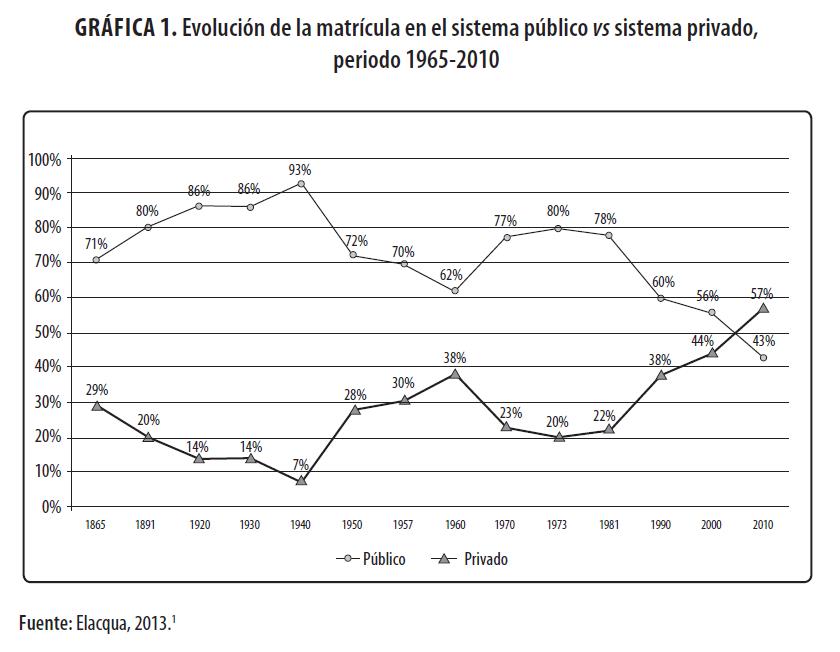 Como históricamente se ha constatado, la educación pública ha cohabitado con la educación particular (privada y/o subvencionada). Es importante tener esto en consideración, con lo que ha señalado la sociología, y en particular, la sociología post-estructuralista francesa (Bourdieu, Foucault, Dubet, Latour, etc.) acerca de que “lo real es relacional ”. Cuando se señala que la realidad es relacional se habla de que un actor, sistema u organización no pueden ser concebidos sin los otros actores con los que se relacionan, bien de manera colaborativa, bien en oposición. En este caso, la educación pública, tanto sus éxitos como sus fracasos tienen directa relación con la forma en cómo convive con la educación privada, es decir, la importancia que socialmente (por medio del Estado y la sociedad) se le otorga a una u otra.