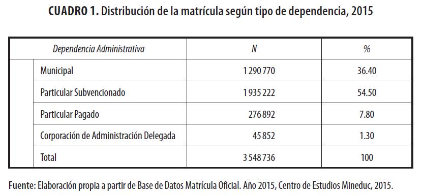 Keywords: Chilean educational system, public education, private subsidized education, school segregation, educational inequality.