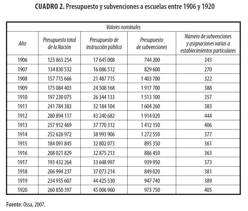 Los establecimientos estatales (o en algunos casos, municipales) siempre obtenían mayores recursos (subvenciones) que los establecimientos particulares (véase Cuadro 2). Estos últimos, previo a los primeros aportes vía subvención regulada por ley (1954), eran financiados por el Estado para otorgar educación en zonas aisladas o donde se estaban poblando regiones geográficas (en el sur de Chile, el Estado financió colegios privados, generalmente creados por los colonos alemanes). Un ejemplo de lo que señalamos es el siguiente cuadro: