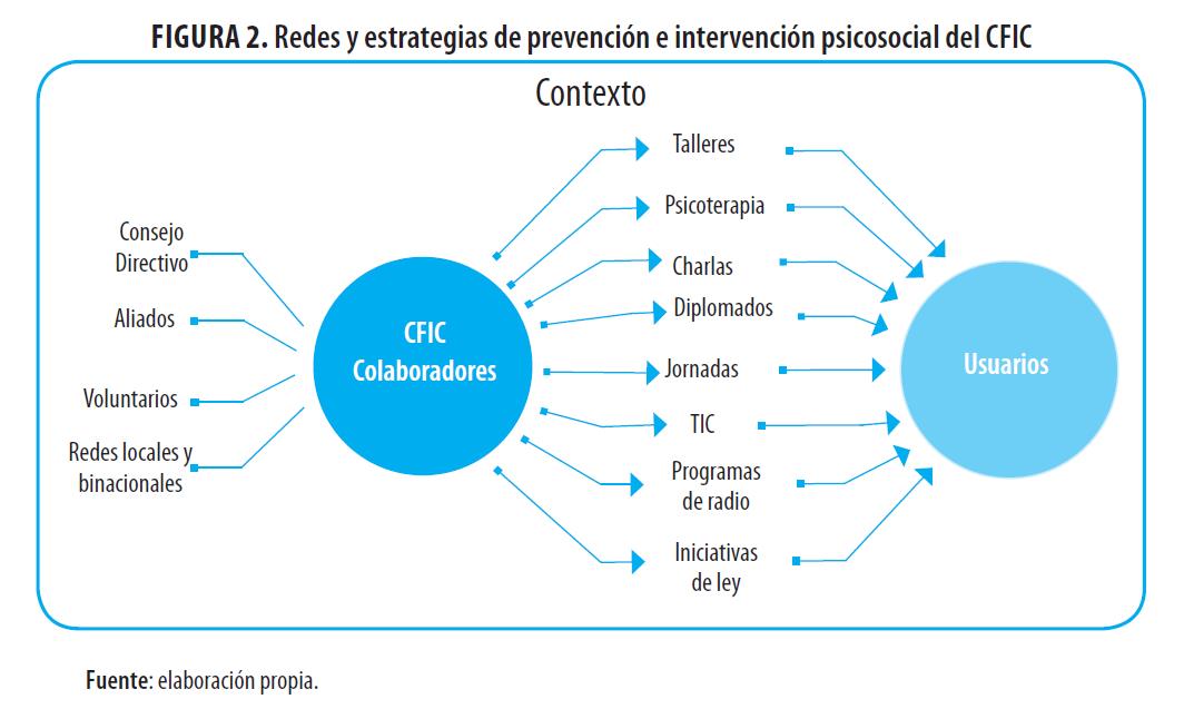 Finalmente, cabe destacar que el trabajo del CFIC se caracteriza por generar efectos multisistémicos que van de lo individual hacia lo colectivo y viceversa. Esta forma de trabajar desde una perspectiva multidimensional y multisistémica responde al reconocimiento de la violencia como un fenómeno complejo en cuyo entramado se encuentran aspectos individuales, familiares/relacionales, institucionales, comunitarios y socioculturales; es por ello que se requiere de la consideración de una amplia gama de estrategias e intervenciones que sean capaces de incidir en estos distintos niveles y que, por tanto, puedan participar en la reconstrucción del tejido social.