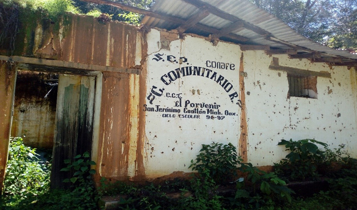 Retomando nuestros datos de campo, observamos que una de las principales razones por las que las familias seguían viviendo en sus rancherías tiene que ver con la producción del café, pues al ser una región cafetalera, desde la década de los sesenta se dedicaron a su cultivo. En las décadas de los ochenta y los noventa la producción de café vivió sus mejores años, ya que tanto la calidad del producto como el precio en que se vendía dejaban buenos dividendos entre los productores. Sin embargo, a raíz del huracán Paulina, en 1997, que devastó gran parte de la Costa y Sierra Sur de Oaxaca, varios plantíos de cafetal fueron dañados, y comenzaron a llegar las plagas, de manera que la producción cafetalera decayó drásticamente, obligando a muchas familias a dejar sus rancherías y a avecinarse en la comunidad. Así, muchas de las escuelas comunitarias del Conafe quedaron abandonadas, sin que hasta la fecha se haya retomado el caso por parte del Conafe (figura 1).