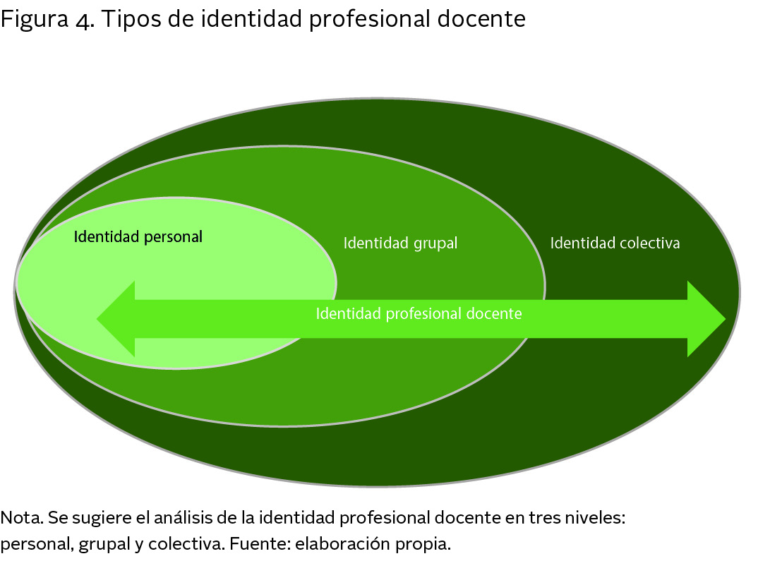 Se sugiere el análisis de la identidad profesional docente en tres niveles: personal, grupal y colectiva.