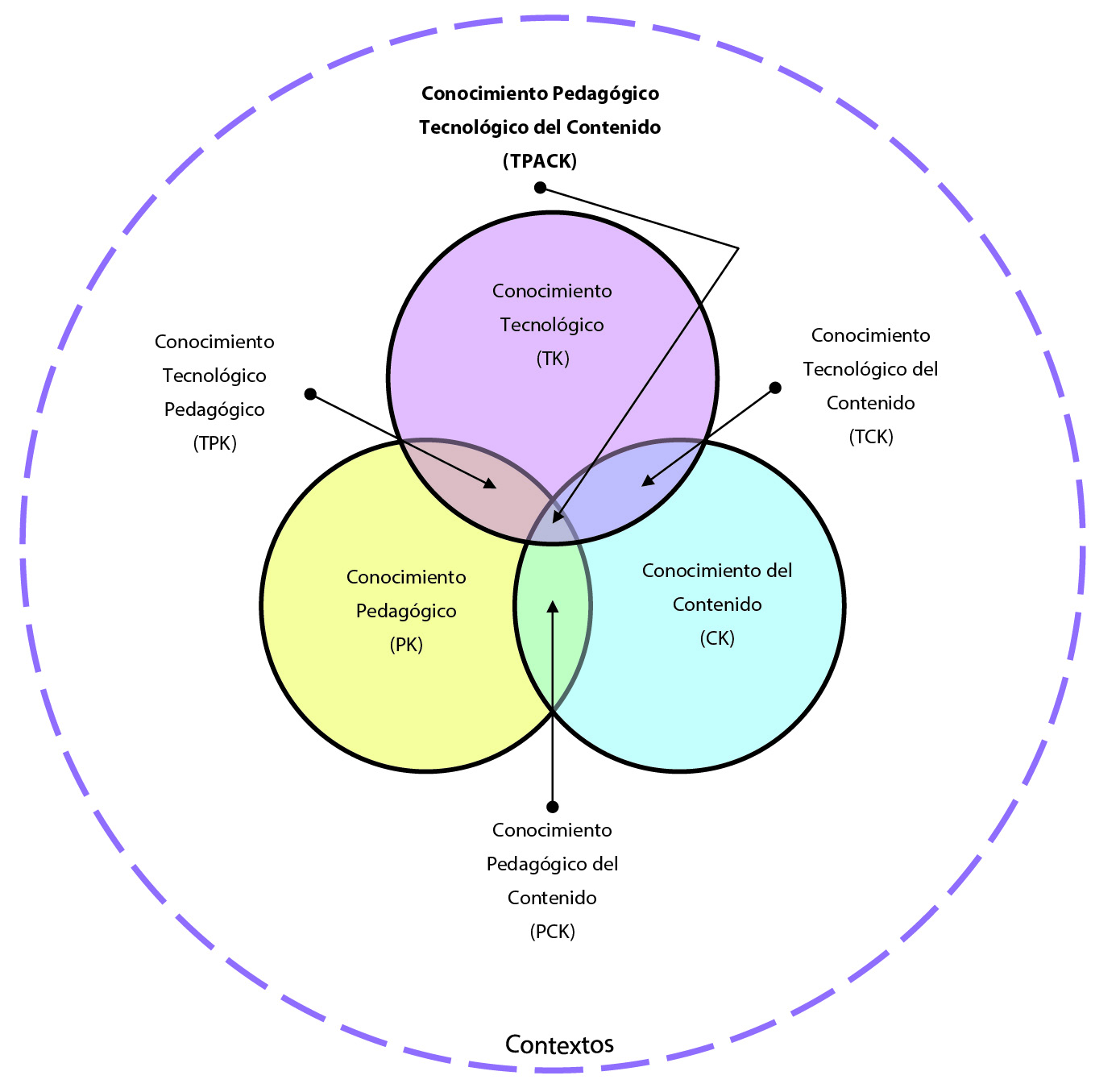 Conocimiento Tecnológico Pedagógico del Contenido (TPACK). Comprensión holística de cómo integrar la tecnología en la enseñanza de un contenido específico de manera pedagógica.