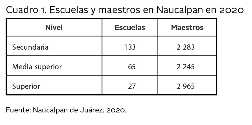 Tan sólo en Naucalpan, según el Cuaderno de Información Estadística y Geográfica No. 1, se cuenta con la población de profesores que muestra el cuadro 1, entendiendo que, en estos niveles educativos, los docentes son distintos por cada asignatura, es decir, no todos son maestros de matemáticas.