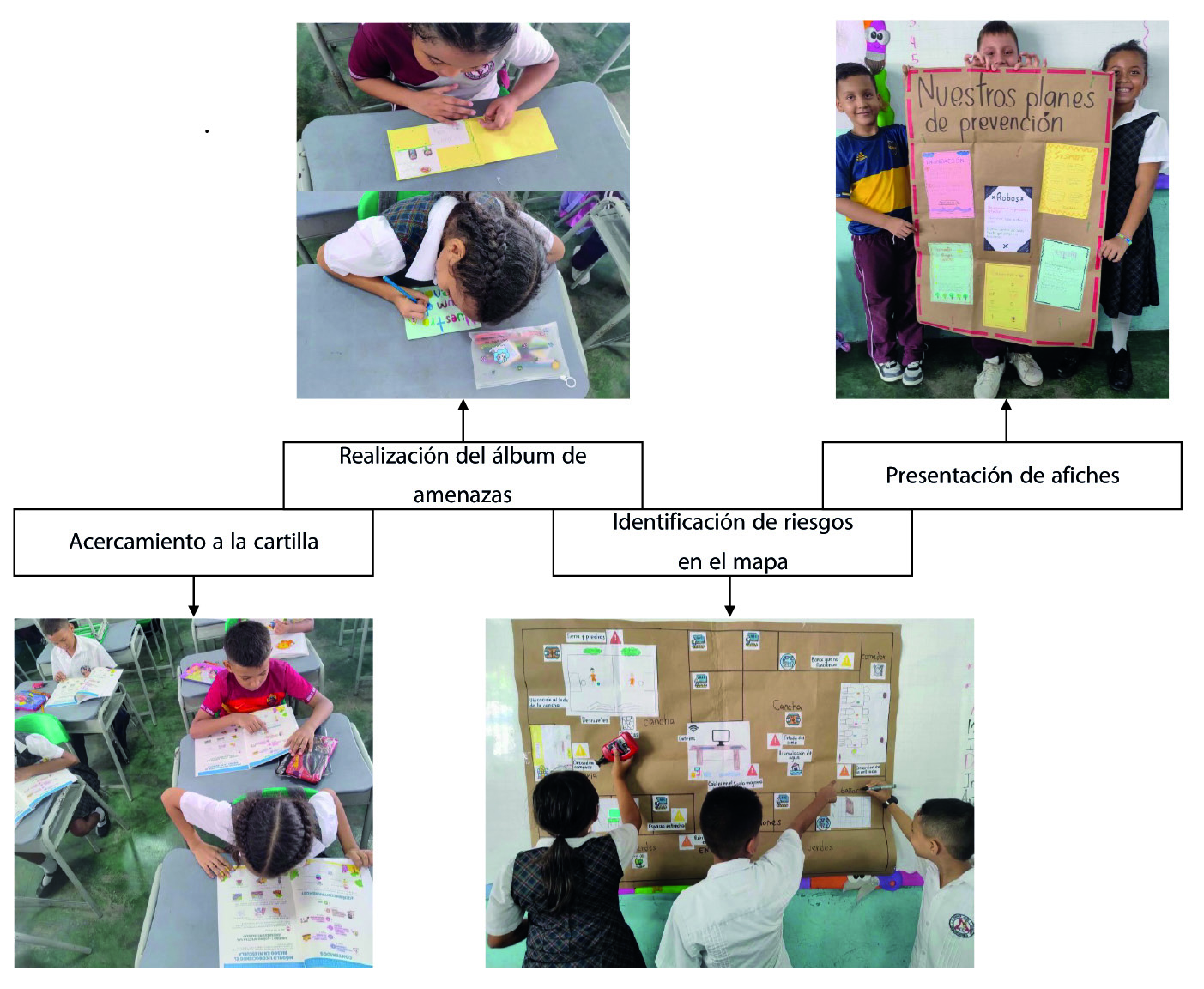 En este proceso, se destaca el diseño e implementación de material didáctico, como la cartilla, que facilitó la conexión entre la comunidad estudiantil de tercer grado y las condiciones de riesgo, ya que favoreció la conceptualización, contextualización y desarrollo de capacidades que se asocian con la cultura de la prevención y la responsabilidad social, que son principios orientadores del modelo y factores clave en la promoción de la Gestión del riesgo; asociados con los principios generales establecidos en el artículo 3° de la Ley 1523 de 2012. Adicionalmente, permite identificar aspectos que llevan a mejorar la cartilla de actividades como material de apoyo.