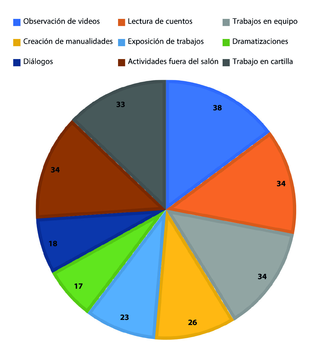 La pregunta siete, asociada con las actividades preferidas se expone en la figura 4, y fueron tomadas como estrategias claves para la elaboración de la ruta metodológica del modelo.