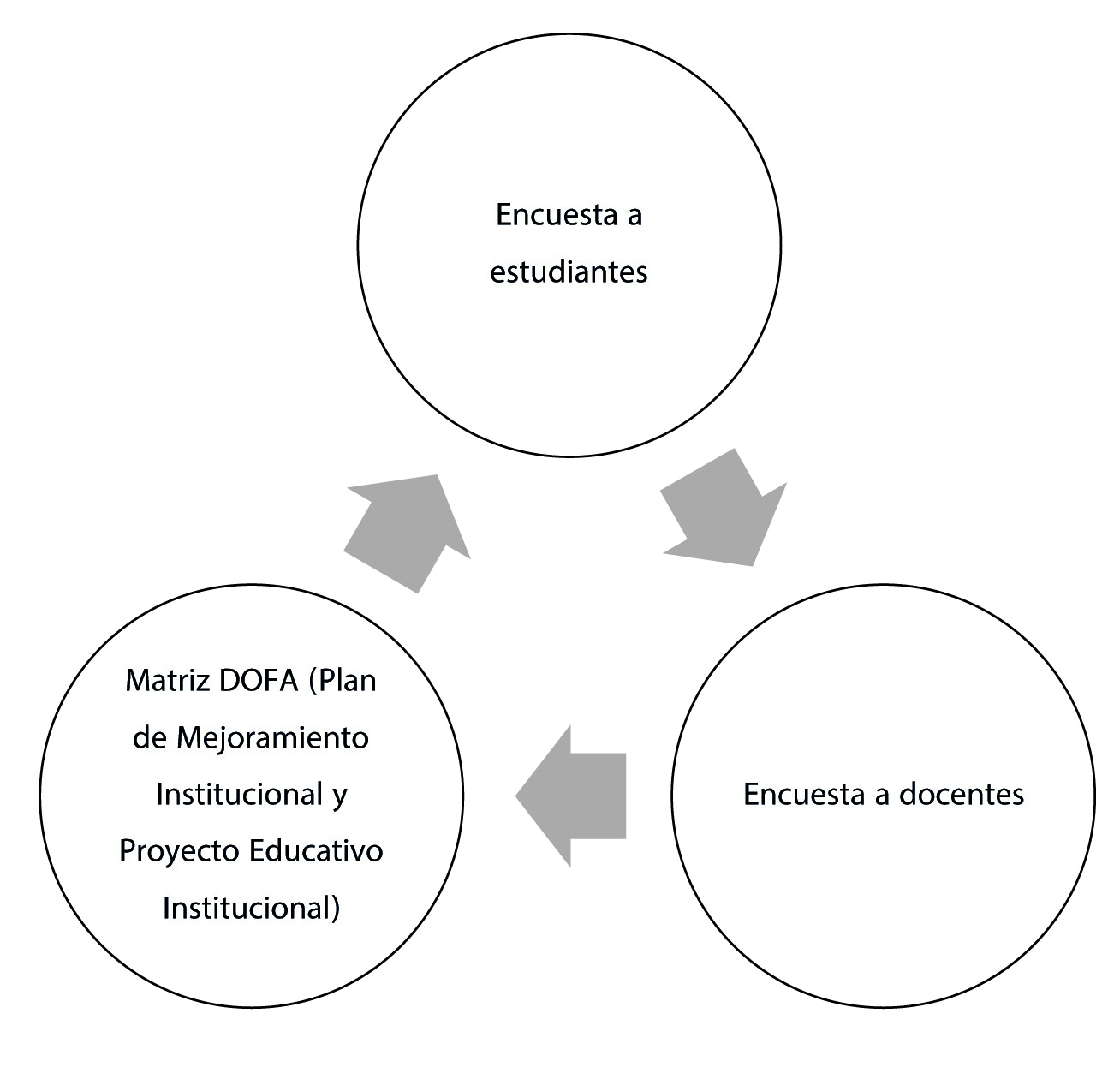 Análisis: aplicación de encuestas a estudiantes del grado tercero y docentes, y elaboración de matriz DOFA (debilidades, oportunidades, fortalezas y amenazas) sobre los resultados de las encuestas y revisión documental del PEI y PMI, identificando las necesidades a tratar mediante el modelo didáctico.