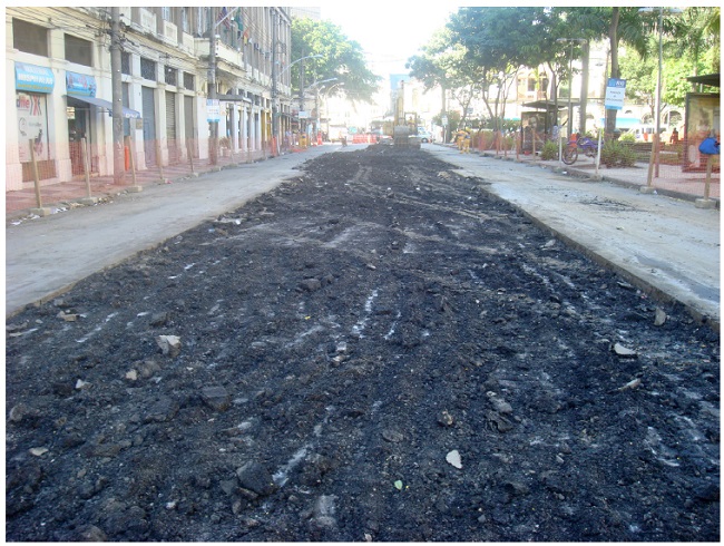 Alcançar esse objetivo, contudo, implicava grande desafio metodológico, na medida em que seria preciso conciliar com a pesquisa arqueológica as metas e o apertado cronograma do programa de revitalização, impostos rigorosamente pela Prefeitura do Rio de Janeiro. Dada a relevância dos dois sítios, o procedimento correto, do ponto de vista científico, seria a escavação convencional do trecho da Praça Jornal do Commercio, onde supostamente deveriam estar os dois cais. Contudo, tratava-se de uma intervenção de todo dependente do poder público municipal, posto que implicava o fechamento das duas pistas de uma das principais vias de escoamento do trânsito na zona portuária, a avenida Barão de Tefé (Figuras 11 e 12), bem como o rompimento das suas respectivas camadas de asfalto, o que só poderia ser feito, de fato, pari passu com as obras de infraestrutura em andamento e com o suporte da Prefeitura, que tinha muita pressa. Isso significava abrir mão, em parte, do que era esperado e desejado do ponto de vista científico, em prol do que era possível na circunstância do empreendimento. Ou seja, tão somente monitorar o que fosse emergencial e escavar sistematicamente o que fosse possível. Assim, o trabalho foi iniciado em consonância com a intervenção prevista para as duas pistas de rolamento, no caso, a instalação de um sistema de drenagem de alta capacidade de escoamento de águas pluviais.