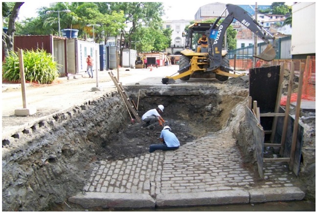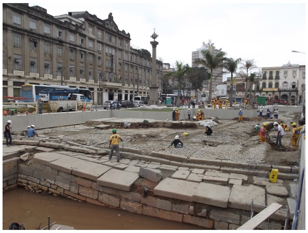 Na circunstância do remodelamento da zona portuária da cidade do Rio de Janeiro com vistas a sua revitalização para as Olimpíadas de 2016, foram realizadas pesadas obras de infraestrutura urbana que implicaram intervenções em subsolo. Em virtude da Lei Federal nº 3.924/61, que dispõe sobre os sítios arqueológicos da União, e do Decreto Municipal nº 22.872/2003, que cria a obrigatoriedade da pesquisa arqueológica nas obras de intervenção urbana, o Instituto do Patrimônio Histórico e Artístico Nacional recomendou o monitoramento arqueológico de toda a área do empreendimento. A convite dos empreendedores, a Etapa 1 do Programa de Revitalização Urbana da Zona Portuária ficou sob nossa coordenação, compreendendo o trecho entre a Praça Mauá e a Praça Jornal do Commercio. No caso da localização, nesta última praça, dos dois sítios históricos de grande relevância - o Cais do Valongo e o Cais da Imperatriz - apenas o monitoramento arqueológico das intervenções seria não somente uma abordagem inadequada, como insuficiente e equivocada, de tal forma que foi elaborado um projeto de natureza acadêmica, com o objetivo de encontrá-los por meio de escavações sistemáticas.