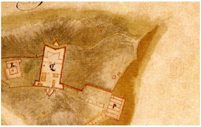 Pouco adiante desse reparo, o terreno parece ter cedido, e, junto com ele, outro trecho dessa parede ciclópica afundou consideravelmente (Figura 98); ao que parece, como resultado de infiltrações no solo de grandes volumes de águas pluviais que, provenientes do Morro do Livramento, aí encontravam seu caminho natural, minando o terreno de tal forma que acabou solapando parcialmente a estrutura.