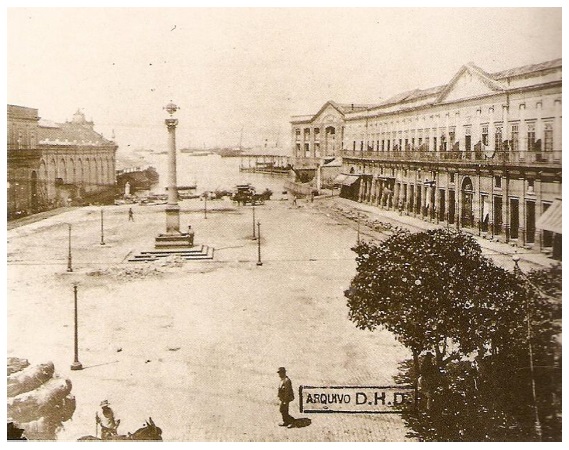 Foi igualmente nessa década que o antigo projeto de execução de um monumento à chegada da Imperatriz ao Brasil, nunca realizado, foi retomado. Não mais o grandioso chafariz projetado por Grandjean de Montigny, mas uma versão empobrecida, de um discípulo seu, foi aprovada pela Câmara, sendo finalmente instalada na praça a coluna encimada pela esfera armilar e as três setas do martírio de São Sebastião, emblema da cidade, com quatro bicas em seu entorno e uma bacia retangular de captação das águas. Ela se encontra até hoje no local, embora tenham sido retiradas as bicas e a bacia originais. Esse conjunto de iniciativas atesta sem dúvida o empenho na revitalização e no enobrecimento da Praça Municipal e do Cais da Imperatriz nos anos 1870.