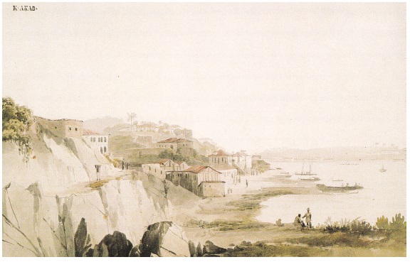 Ao que se sabe até o momento, a única imagem existente dessa reforma foi produzida por Friedrich Pustkow, em cerca de 184425 (Figura 9). Tendo ao fundo uma grande praça, nela aparece, ao centro, uma construção hexagonal com teto abobadado, encimada pela efígie da princesa das Duas Sicílias; o cais, delimitado por um gradil, foi ornado, à entrada, por um par de golfinhos de bronze sobre pilares de pedra. E o velho Cais do Valongo foi rebatizado como Cais da Imperatriz.