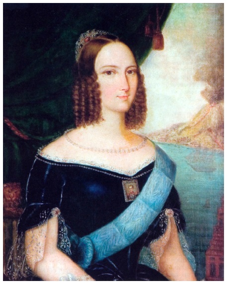Antecipada a maioridade de D. Pedro II, em 1840, sagrado e coroado imperador do Brasil no ano seguinte, aos quinze anos, era chegada a hora de casá-lo. Após malogradas tentativas junto a diferentes cortes europeias de se encontrar uma esposa para ele disposta a vir para os trópicos, finalmente surgiu uma solução no Reino das Duas Sicílias: de comum acordo foi escolhida a princesa Teresa Cristina Maria de Bourbon, filha mais nova do Rei Francisco I de Bourbon e Duas Sicílias e da infanta da Espanha Maria Isabel de Bourbon (Figura 8).