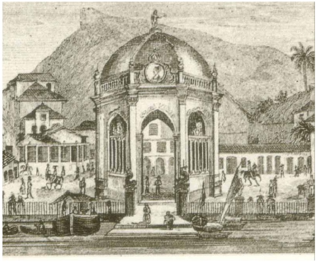 Por outro lado, após a chegada da corte portuguesa, uma declaração do Intendente Geral de Polícia da Corte e do Estado do Brasil, o Desembargador do Paço e Ouvidor da Corte Paulo Fernandes Viana, datada de 30 de maio de 181110, afirma que, por ordem de Sua Alteza Real o Príncipe Regente, mandara fazer uma rampa e um cais de pedra na praia do Valongo.