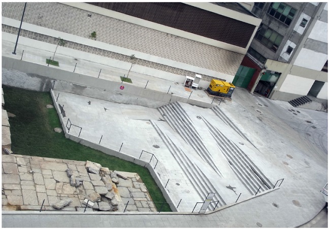A área em frente aos antigos Cais do Valongo e Cais da Imperatriz também foi reurbanizada, de modo a possibilitar a visita do público ao sítio arqueológico. Escadas, rampas de acesso e um ponto de observação foram construídos, proporcionando um local de reflexão para os que visitam aquele que foi tanto o ponto de chegada ao Brasil de centenas de milhares de africanos para serem escravizados, quanto da princesa das Duas Sicílias, Teresa Cristina Maria de Bourbon, por ocasião do seu casamento com D. Pedro II (Figuras 114 a 119).