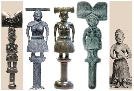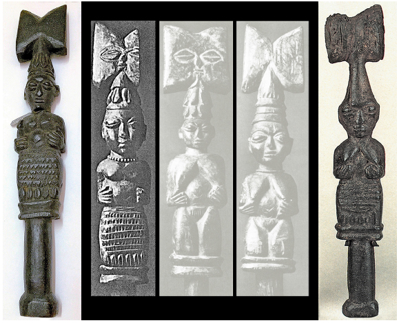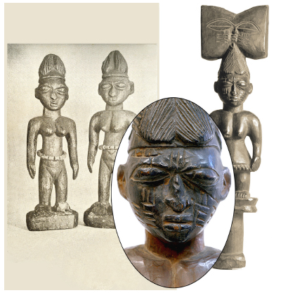 É como se essas estátuas, que também são bancos, repartissem a tarefa de rememorar aquela peça única e primeva. Desde Nina Rodrigues até as pesquisas em andamento, não se viu mais nada igual. Excedem as dimensões das estatuetas conhecidas, não apenas desse estilo mas também de mesmo gênero, e não têm as funções mobiliárias e arquitetônicas que elas poderiam ter tido.