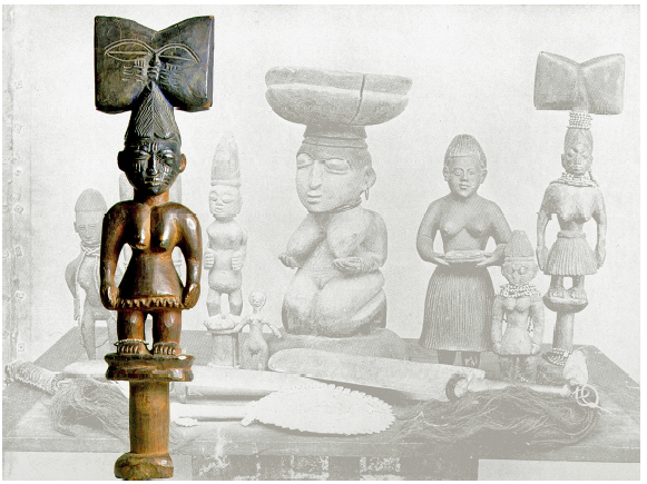 Mas nem sempre é possível estabelecer uma relação concreta e formal entre os objetos dos candomblés antigos e os de estilos africanos compreendidos nessa grande área do território africano, que é de onde viriam os elementos “gêge-nagô” da cultura brasileira. Os estudos consolidados sobre estilos artísticos dos iorubás, a que nos referimos acima, e os estudos sobre as chamadas “artes tradicionais” da África pouco foram cultivados entre nós, no Brasil, até pouco tempo atrás, embora, sob seu pretexto, tenha havido intensa troca entre estudiosos do negro no Brasil nos anos 1930 e 1940 e pesquisadores estrangeiros, como se vê nos arquivos e na correspondência de Arthur Ramos.44