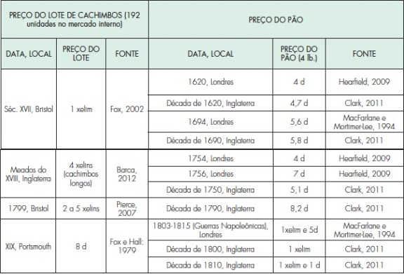 Os cachimbos são normalmente descritos como itens muito baratos, o que se relaciona diretamente com o fato de serem altamente descartáveis. Segundo Sudbury e Gerth, o tempo entre a manufatura de um cachimbo, sua importação, uso e descarte ocorria em tempo médio menor que dois anos. Em decorrência desse caráter descartável do cachimbo, lembra-se que sua produção foi intensa (estima-se que, no século XVIII, então já com o auxílio da gin-press, um fabricante habilidoso conseguiria produzir cerca de 500 cachimbos de haste longa por dia). Nesse sentido, é interessante apontar as enormes quantidades de cachimbos listados em inventários de espólios de indivíduos falecidos em Port Royal, Jamaica (de 258 a 11.520 cachimbos), de modo que o estoque de admiráveis quantidades atesta o seu intenso consumo. Contudo, como aponta Moloney, apesar de serem itens baratos, havia uma gradação de preços, conforme a sua qualidade. Por exemplo, seu preço poderia variar de acordo com comprimento da haste e presença de esmalte. Ainda, Pierce aponta um dado interessante para o caso da exportação: os preços dos cachimbos variavam conforme o mercado para o qual eram destinados.63