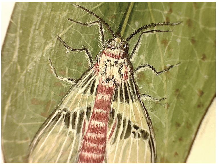 No entanto, além dos desenhos pintados, também vemos pinturas como produto das expedições de naturalistas. Estas são reconhecidas nas representações de espécimes com tinta e pincel, fazendo o uso de cores para delimitar as formas e conformar os detalhes. É verdade que também nestas imagens existe um desenho prévio, mas ele permanece subjacente à camada pictórica e não tem significância no resultado final. O produto é fundamentalmente diferente da iluminação aguada, na qual as linhas se sobressaem às cores. Nas pinturas executadas sobre papel, o desenho pode ser o primeiro traço, mas a imagem final é constituída pelo movimento do pincel sobre o suporte, ora controlando a tinta ora deixando que ela corra solta e forme bordas aleatórias. Embora sejam duas técnicas diferentes de formação da imagem, ambas têm sido designadas indistintamente como “desenhos aquarelados”(Figura 2).
