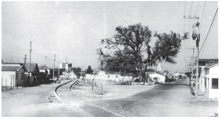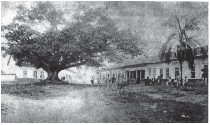 O segundo largo, na praça Major Rodrigues Luiz, antigo largo da Figueira (Figura 10), situava-se no encontro da rua da Estalagem com a rua Municipal, atuais ruas Dr. Rodrigues de Azevedo e Pedro Vicente de Azevedo, respectivamente (Figura 6 - marcador 3), e deu lugar, anos mais tarde, ao pátio do Grupo Escolar Conde Moreira Lima, operação que infelizmente levou ao corte da figueira que ali se encontrava.38 Apesar de inserido no “tecido urbano” e de ser utilizado como ponto de encontro por muitos dos habitantes locais, o largo não tinha calçamento algum, transformando-se, na época das chuvas, “em um lamaçal”.39