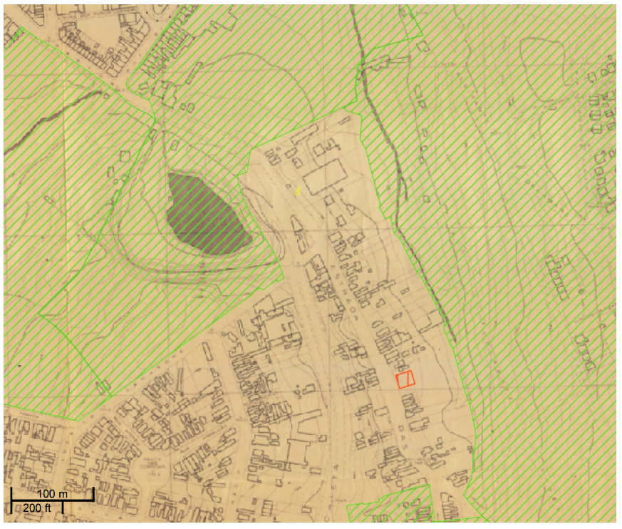 Finalmente, através da Resolução nº 15 de 26 de maio de 1911, a Câmara de Vereadores autorizou “a Prefeitura a receber a doação feita pelo proprietário do terreno onde está a ‘Figueira das Lágrimas’, no Ypiranga”, tomando para si o dever de sua manutenção, despendendo “o que for preciso para a conservação da mesma, desde que a despesa não exceda a verba para a qual a Prefeitura tem auctorização legal, independente de votação especial da Câmara”.77 O terreno doado tinha 10 x 10 metros (Figura 30), conforme consta no termo de doação lavrado em fevereiro de 1920.78 E, assim, a Figueira das Lágrimas continuou a ser um marco na paisagem do Ipiranga, inclusive em documentação cartográfica encontrada, datada de 1921 (Figura 31) e 1930 (Figura 32).