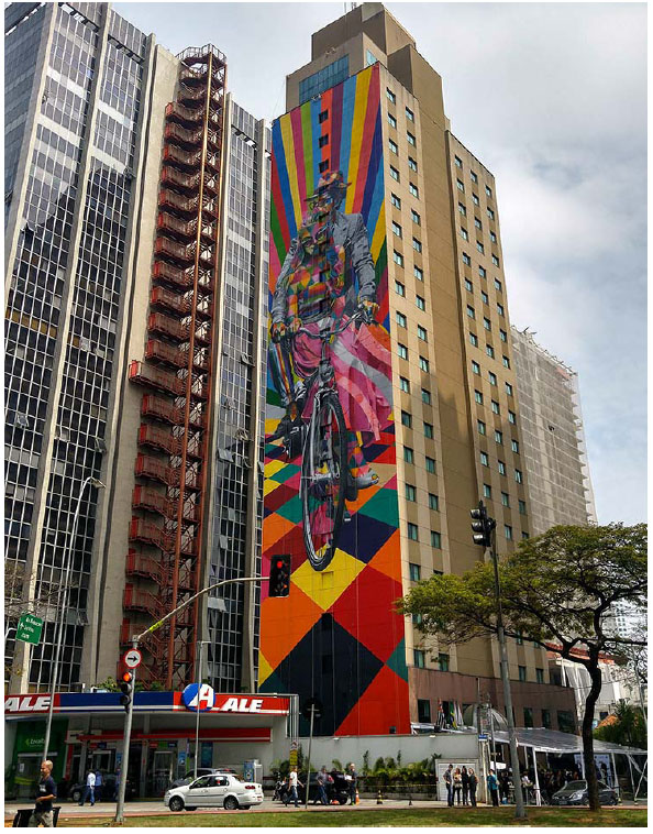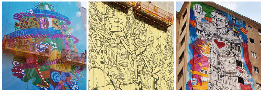O projeto, idealizado pela agência de propaganda e marketing AlmapBBDO, convidou o Estúdio Colletivo, Rui Amaral e a dupla Mulheres Barbadas para realizar os painéis em empenas pela cidade. Os primeiros painéis foram desenvolvidos na rua da Consolação, na avenida Paulista e na rua Amauri, e seus temas estavam diretamente relacionados aos negócios da companhia no Brasil: transporte, energia e saúde (Figura 4).