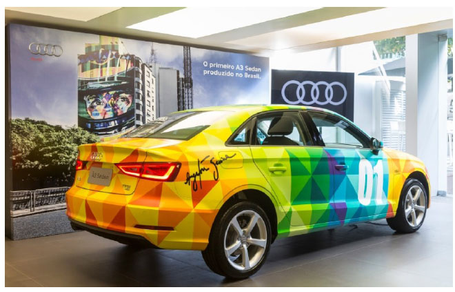 Em outro caso, a montadora Audi utilizou-se do graffiti para lançar um de seus veículos. No caso, o grafiteiro Kobra fez um graffiti com a face de Ayrton Senna em uma empena localizada numa movimentada avenida da cidade (Figura 3):
