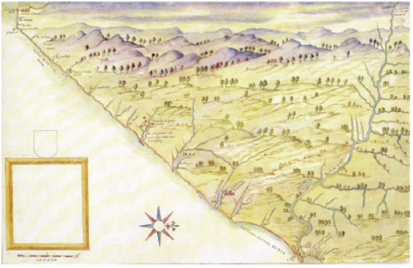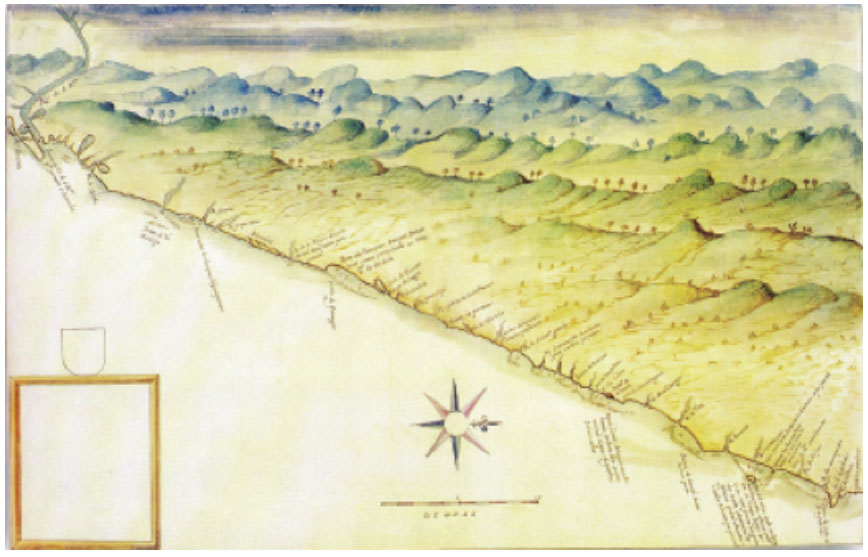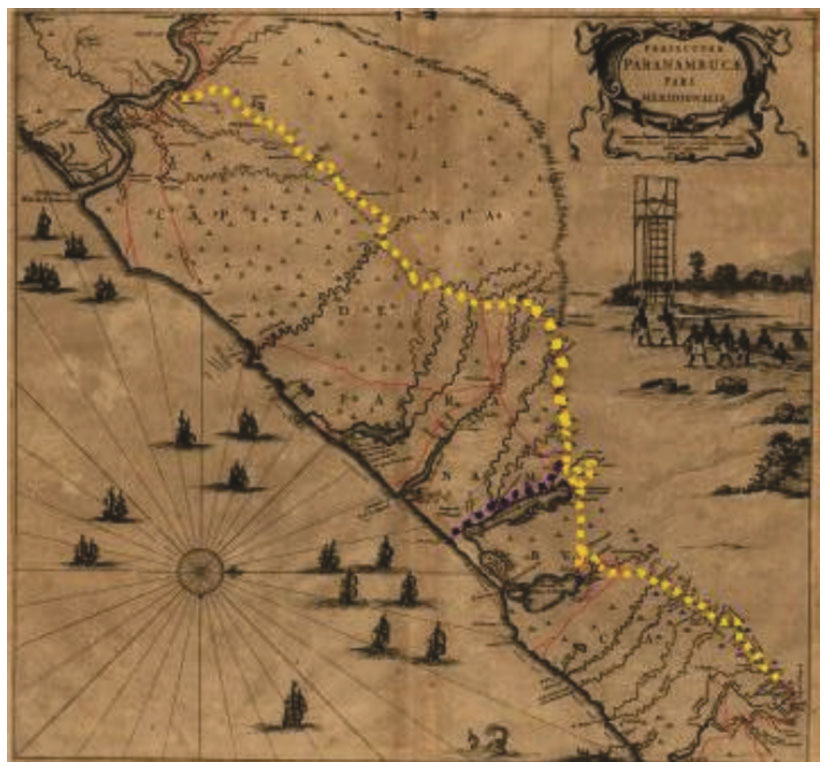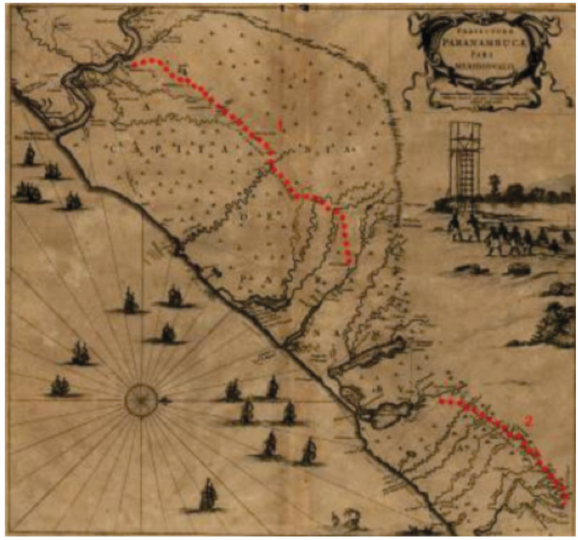 KEYWORDS: 17th century cartography, Territorial formation of Alagoas, Roadways, Dutch iconography.