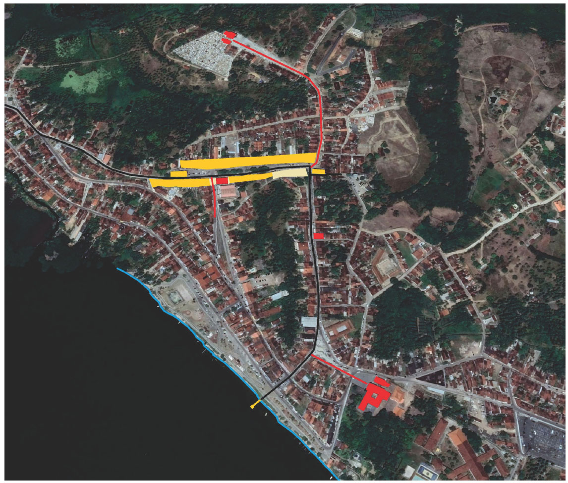 O mapa revela aspectos interessantes do desenho urbano acerca do seu traçado e das edificações. Com relação aos caminhos, o que parte da esquerda, provavelmente do porto do Francês,30 passa pelo reduto, em seguida pela matriz rumo à igreja do Rosário e daí para o “sertão”, ou seja, os lugares mais afastados do mar. O caminho que sai da igreja do Rosário levava até o porto. A lagoa comparece em larga faixa do mapa, compatível com sua importância (Figuras 37, 38 e 39).