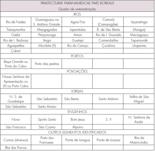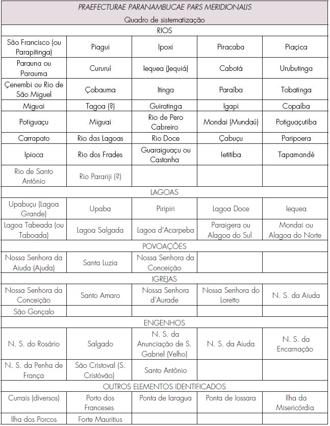 Apesar de alguns problemas com a grafia de palavras que atravessam diferentes idiomas, foi possível identificar a maior parte dos rios, povoados e engenhos indicados (Quadros 1 e 2).
