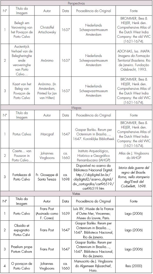 Foi possível identificar três tipos de representação gráfica sobre a vila de Bom Sucesso do Porto Calvo: dois mapas perspectivados, três mapas e quatro vistas.