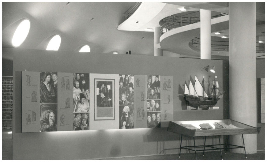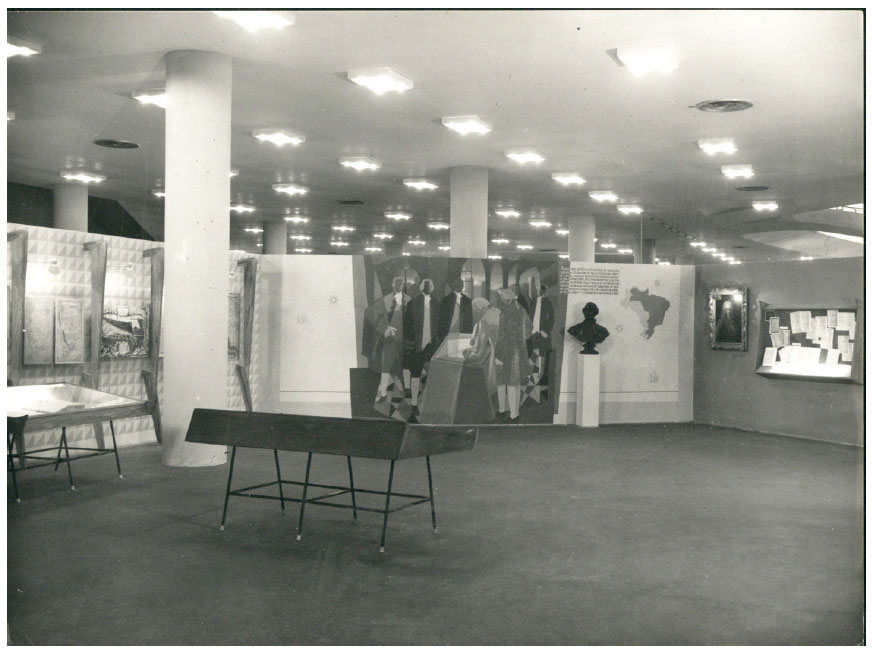 Foi nesse espaço de cerca de sete mil metros quadrados dispostos em dois pavimentos, cuja visualidade externa alude a uma moradia indígena, que em 13 de setembro de 1954 foi solenemente aberta para convidados a Exposição de história de São Paulo no quadro da história do Brasil, sob a curadoria do professor Jaime Cortesão, com o auxílio direto de Mário Neme, Ernani Silva Bruno e Hélio Damante.29